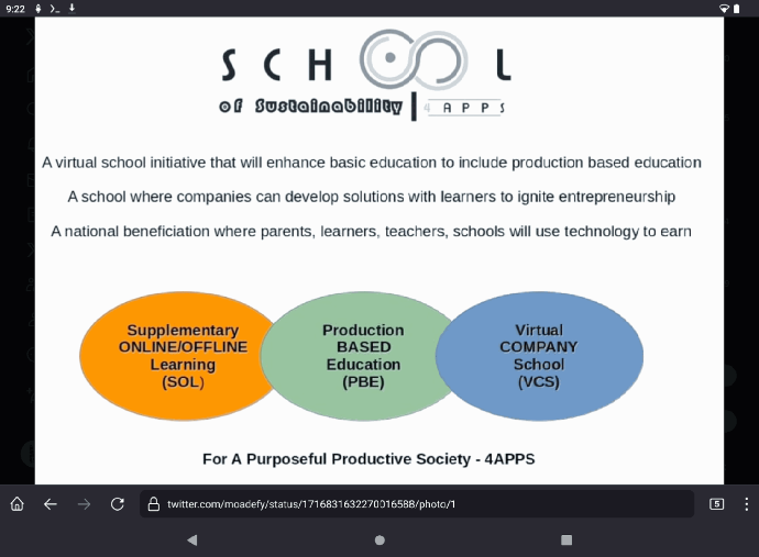 18 July 2025 We have worked on a digital learning and training platform that will support anyone from their early education throughout their stages until their work or entrepreneural skills continuous improvement. We are now targeting to package and distribute with our own bespoke hardware that will eliminate the need for internet - to be able to work offline and sync via bluetooth or wifi in any learning space - school or home or under a tree. Demo android app to be released at https://schoollms.online...