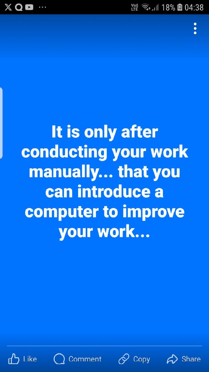 It is only after conducting your work manually... that you can introduce a computer to improve your work...