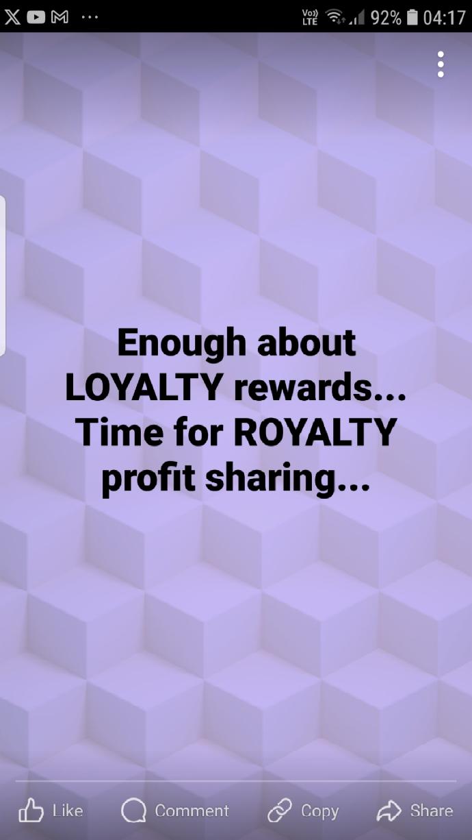 Enough about LOYALTY rewards... Time for ROYALTY profit sharing...