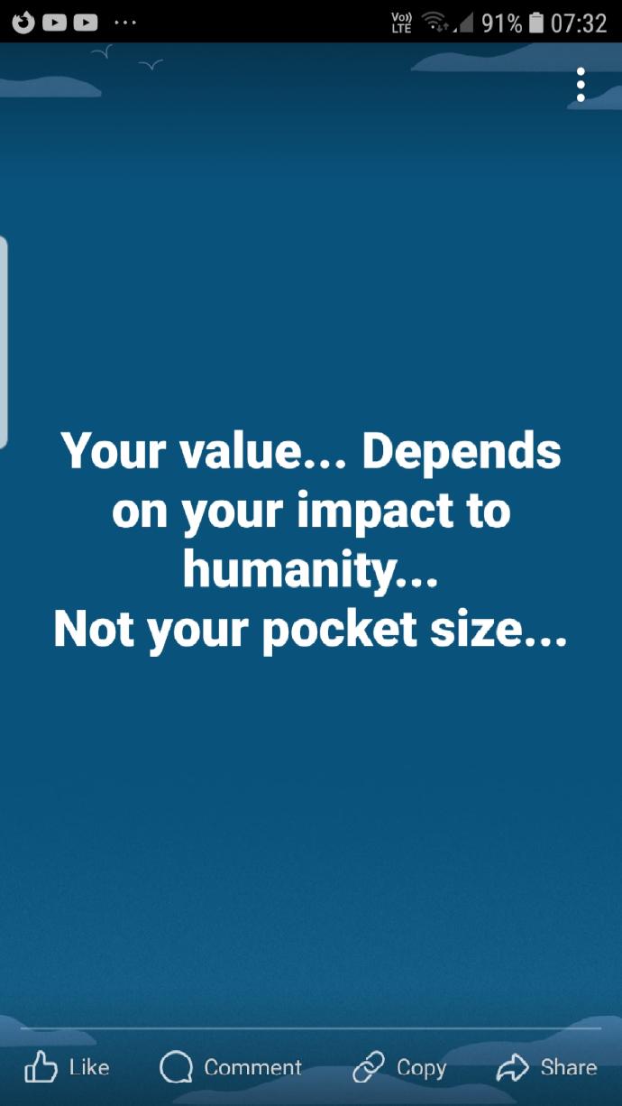 Your value... Depends on your impact to humanity... Not your pocket size...