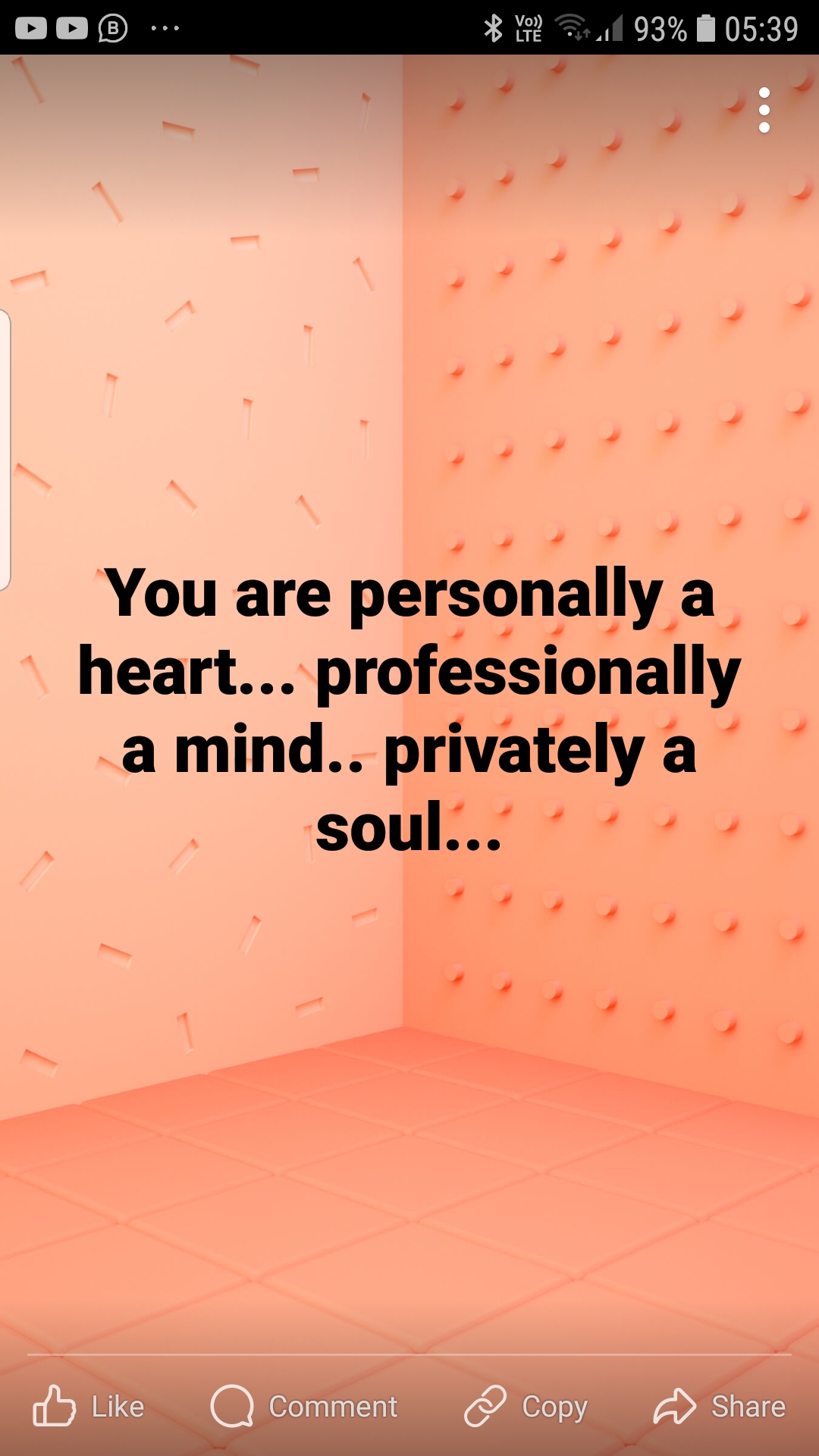 You are personally a heart... professionally a mind... privately a soul...